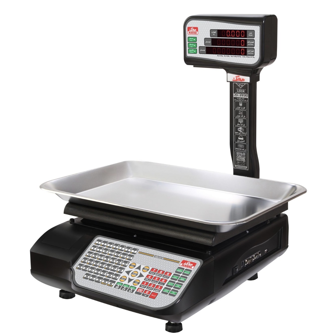 این ترازوی صنعتی با نمایشگر دو طرفه در قسمت پشت و جلوی دستگاه محصولی ایده آل برای دید بهتر مخاطب است که رضایت بخشی بسیار در توزین، حمل، دوام و پایداری و قیمت داشته است. این محصول به دلیل خاصیت ضد آب خود، با قرار گیری در محیط های مرطوب نیز دچار مشکلی نخواهد شد. این دستگاه قطعه شمار است یعنی علاوه بر توزین عمل شمارش قطعات را نیز انجام می دهد و شما با استفاده از این محصول شگفت انگیز قادر خواهید بود که زمان خاموش شدن خودکار را به دستگاه بدهید.